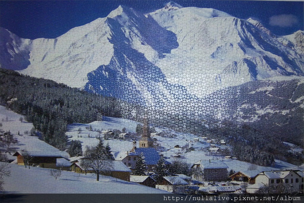 當我拚完顛倒世界的時候才在想應該遇不到比他更有難度的拼圖了吧,結果事實證明一山有比一山高,這次真的讓我碰到一座山了,剛拿到的時候著實無言了一下,所有的拼圖都長一樣也就認了,拼圖本身和盒子上面的圖案竟然是鏡射,也就是左右相反,誰快來告訴我這只是印刷錯誤不是製作單位惡搞阿QQ,房舍和雪地的部分還好解決,都很容易分辦得出來,只剩下天空、山、樹林,的時候我決定先解決天空,畢竟範圍比較小,這都還算OK,剛只剩山和樹林的時候我猶豫了,光是面積就不能比啊~~~~~結果我還是決定從山開始拚,其實只要把顏色好好分類就可以降低難度,終於在10天後完成,然後再決定要先拚左邊的樹林還是右邊的樹林的時候失算了一下,原本覺得右邊的範圍比左邊大,先從左邊開始好了,結果是左邊花了將近一星期左右才完成,右邊本來以為比較不好解決的部分反倒是2天就OK了,看著美麗的山峰漂亮的顏色真的是非常滿足啊^^