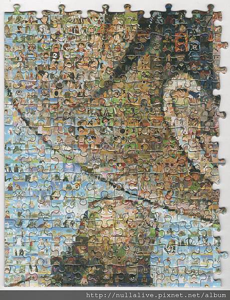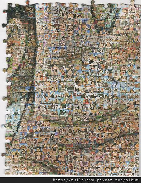 跟這種卡通圖片的馬賽克拼圖戰鬥的好處是,拼圖的擺放方向馬上就知道,然後配合圖片大致上的底色,其實並不算難,只是要有時間和耐心。