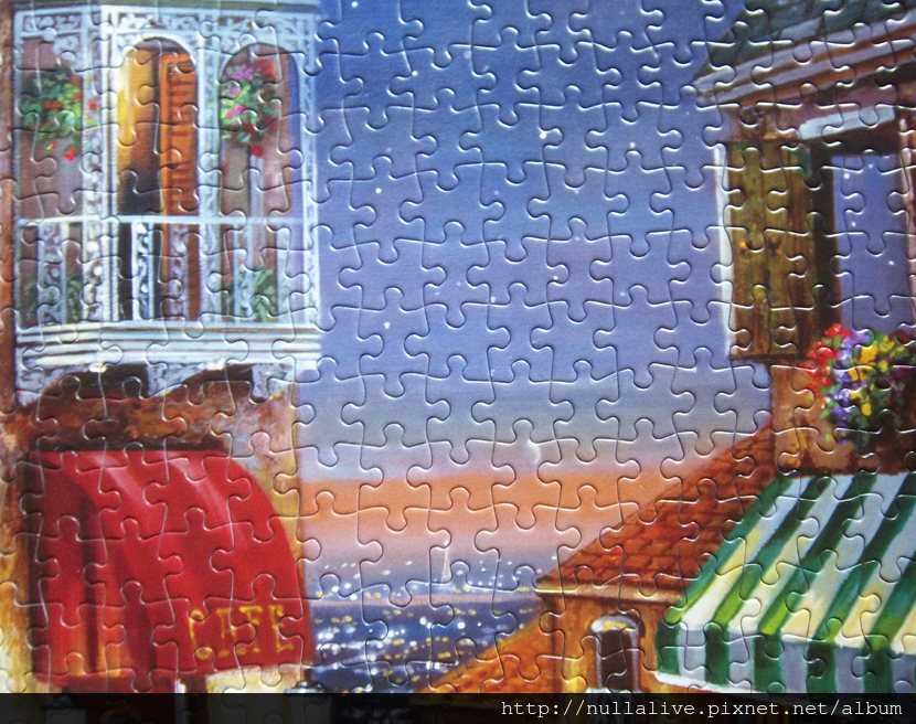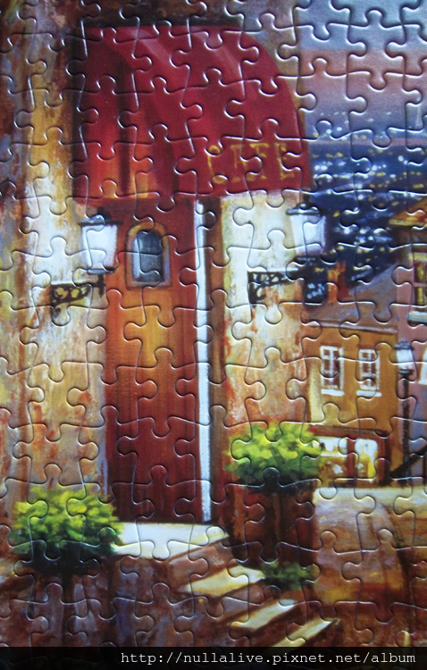 嗯~拼圖的密合度還算ok,拼到最後出乎意外的,最喜歡的地方竟然是磚道路和紅色的棚子,我喜歡的地方都怪怪的.......