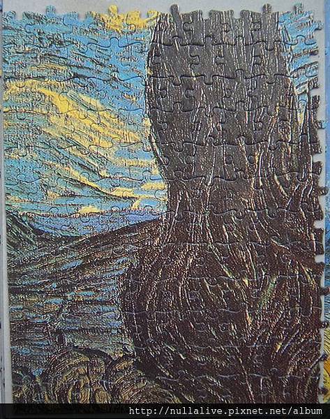 這盒真是那我從頭哀嚎到尾,其實新世紀的拼圖品質以台灣的廠商來講算還好,我哭哭的是它的印刷,如果雷諾瓦的印刷是很細緻的絲綢,相比之下新世紀的印刷大概就像是粗操的紗布吧,對於才剛剛又拼完雷諾瓦出版的星夜的我來說,真的是很痛苦的一件事。