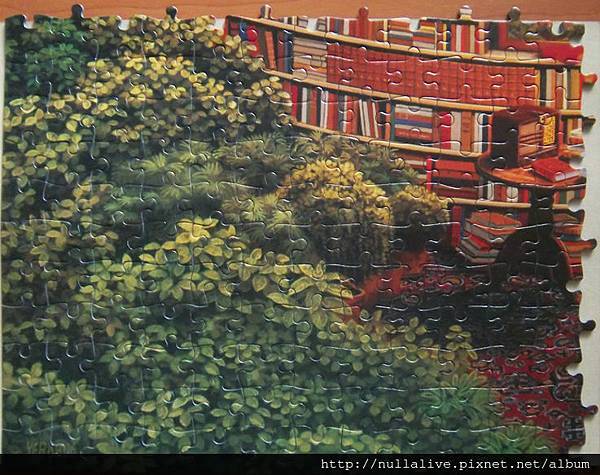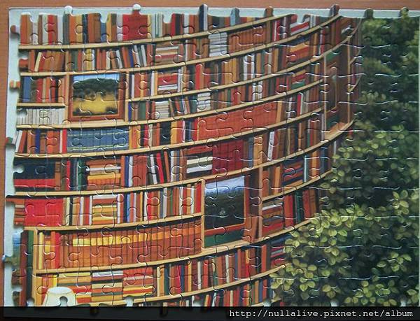 如果有這麼個無邊際的書架,真的是人生的至福,不過現在會希望書架有一半是被拼圖佔據(笑)。