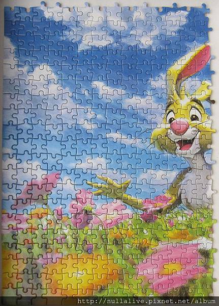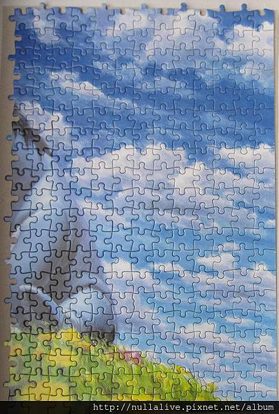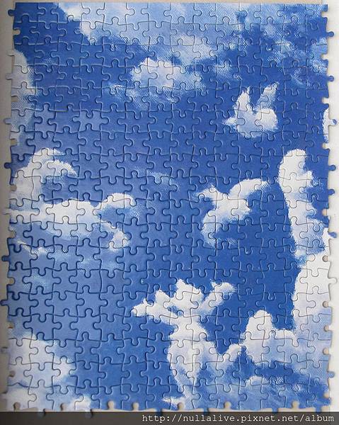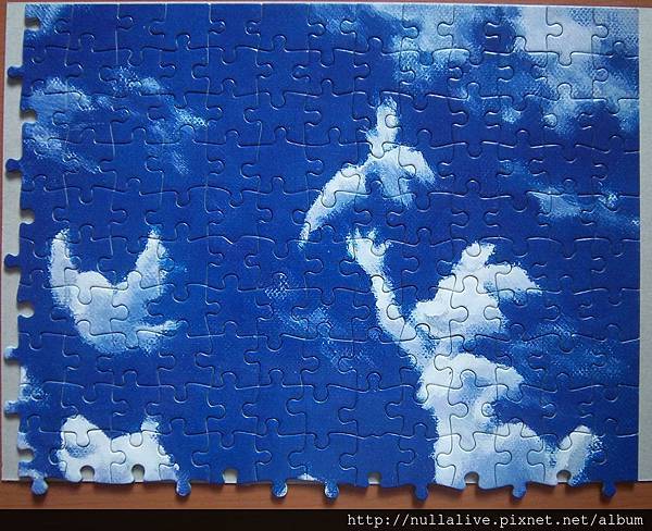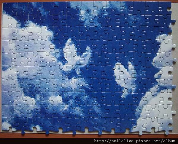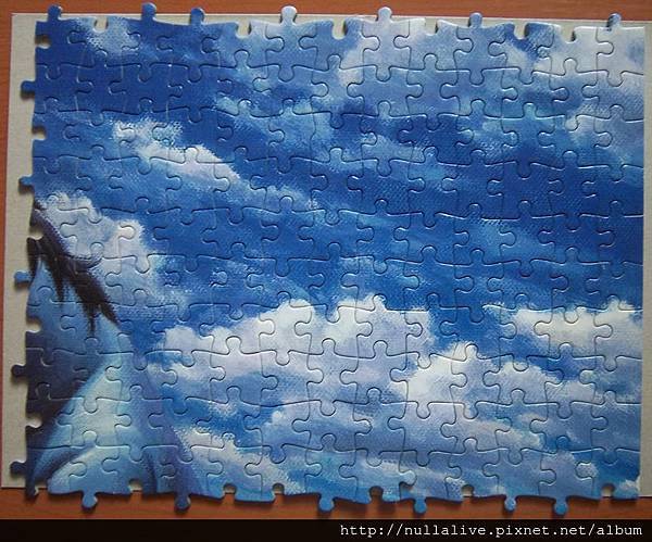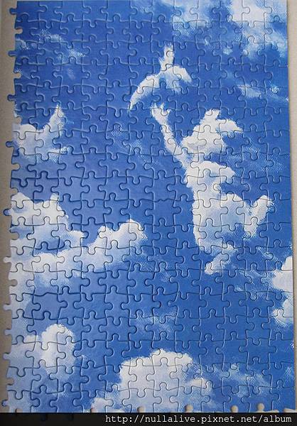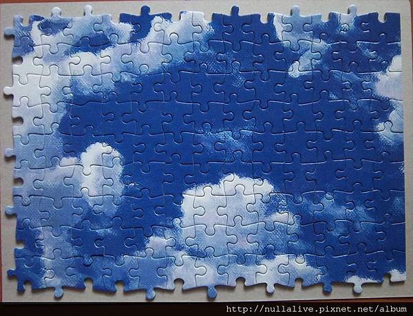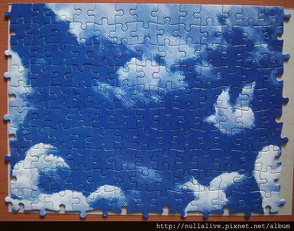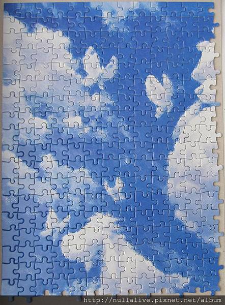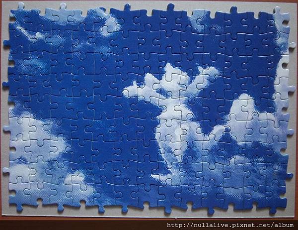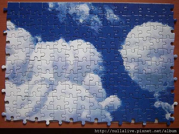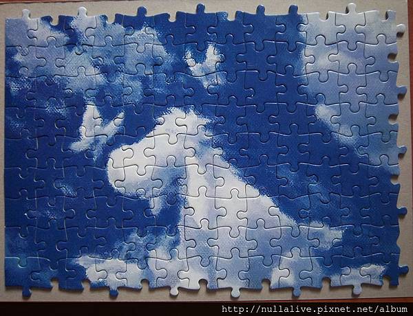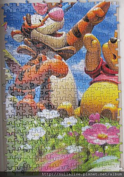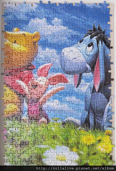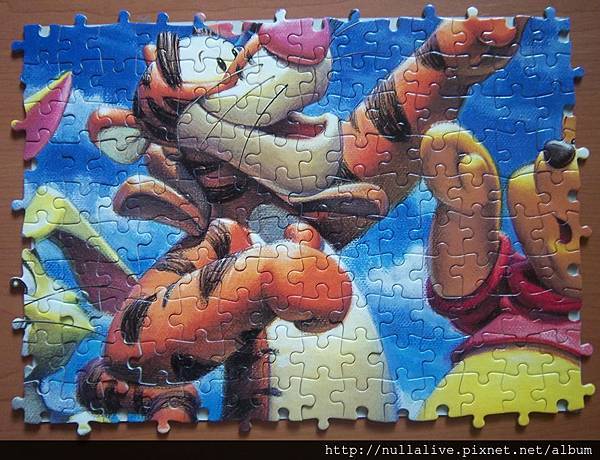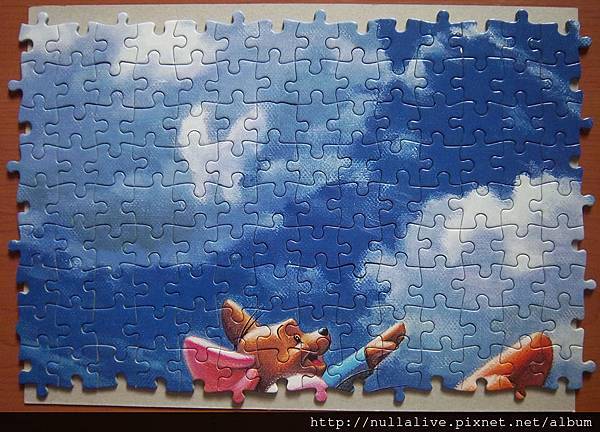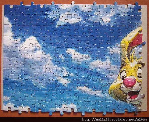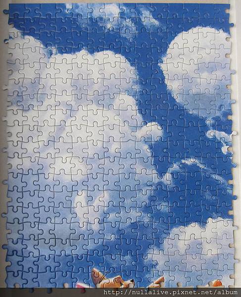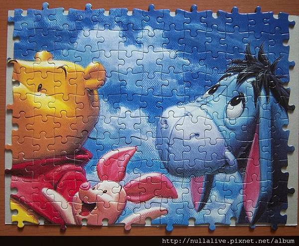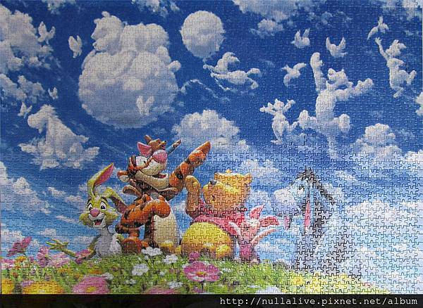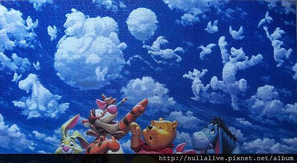 很可愛的小熊維尼和愉快的夥伴,可..........做成拼圖就一點都不可愛了,尤其是上方的藍天白雲.......真的是讓我花了點時間才拼完。