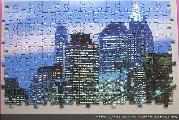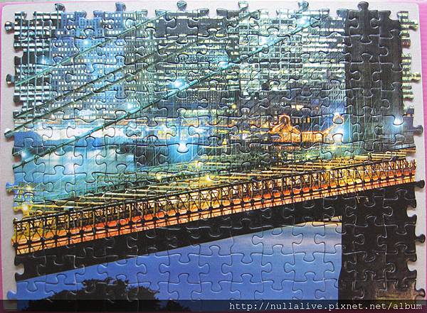 原本以為會被點點燈光卡死死,結果把大橋和天空拼完後,大樓的部份其實也沒剩多少,靠著明顯的刀模倒是輕鬆的搞定了。